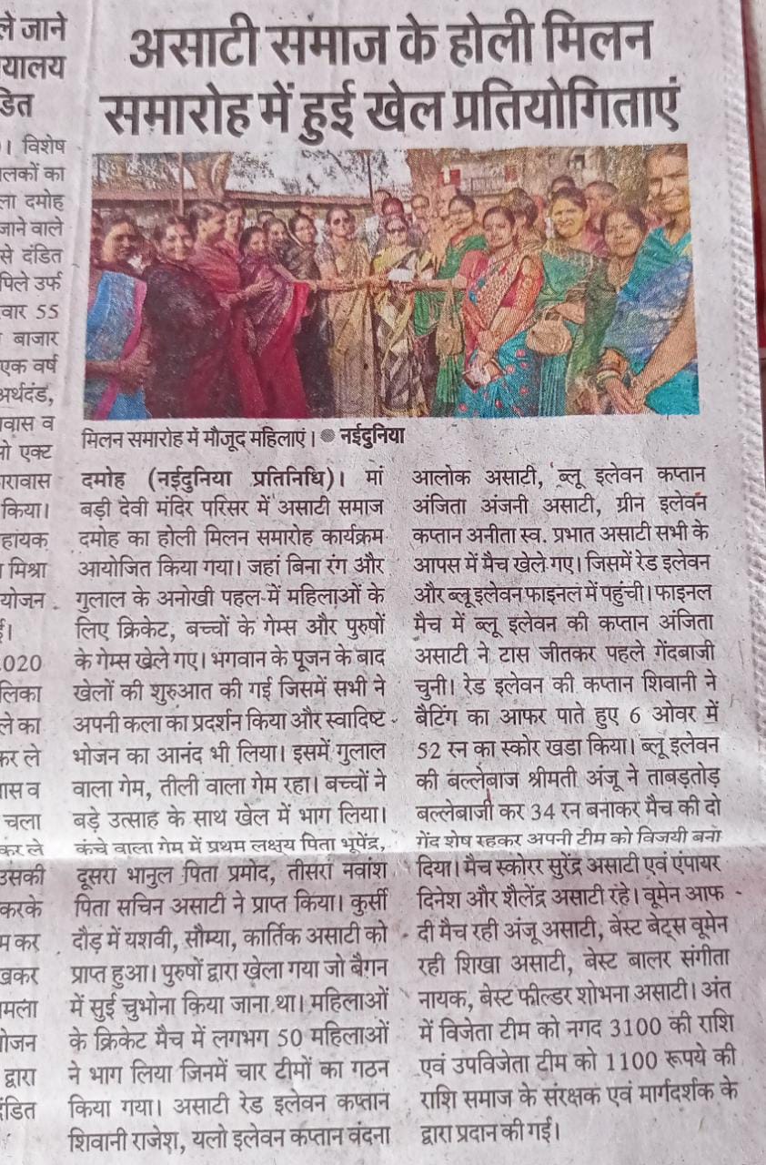 असाटी समाज दमोह में होली मिलन पर हुई खेल प्रतियोगिताएं 👇