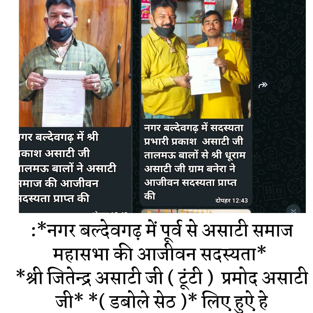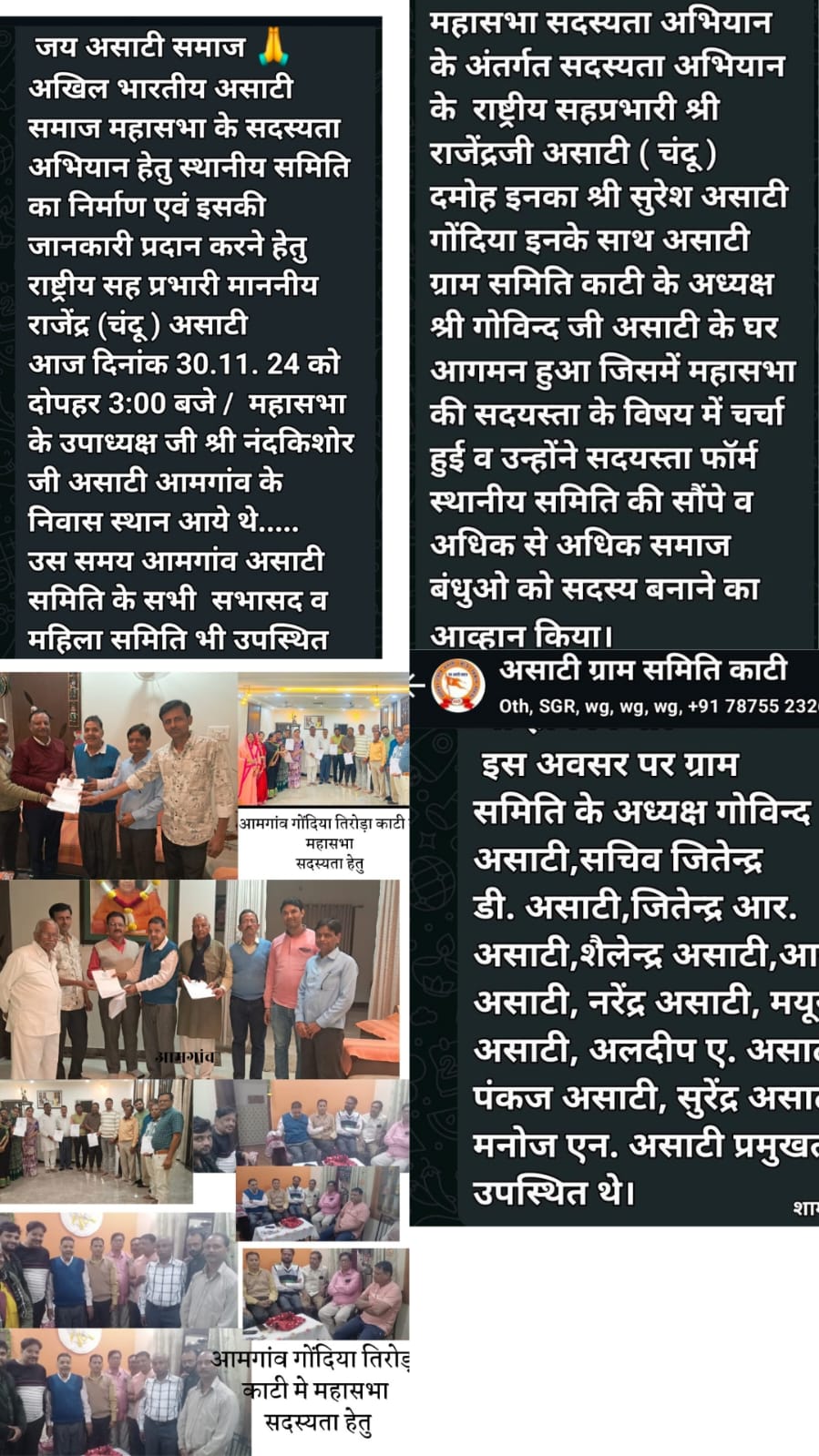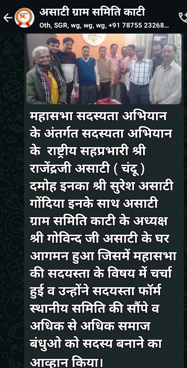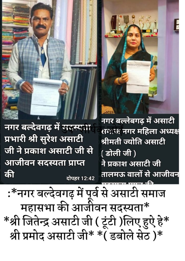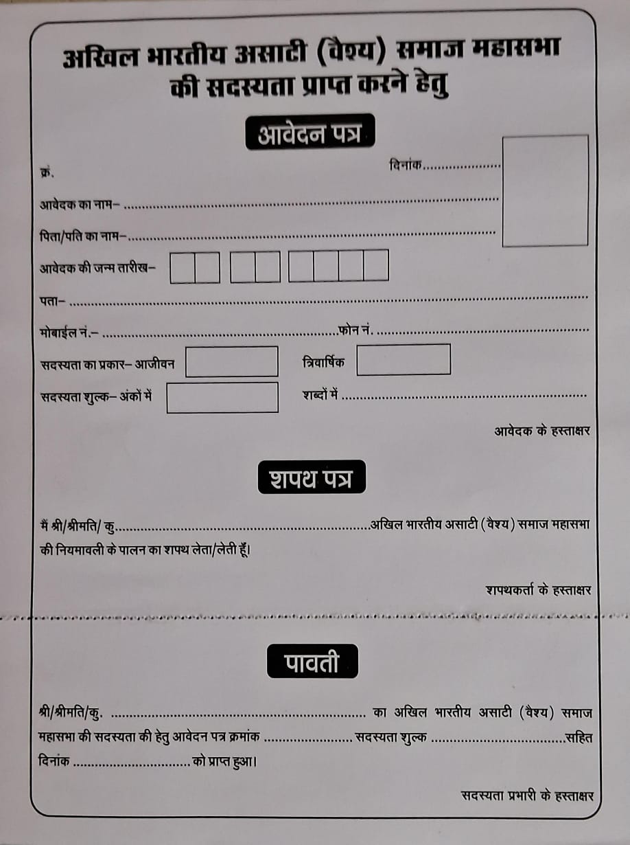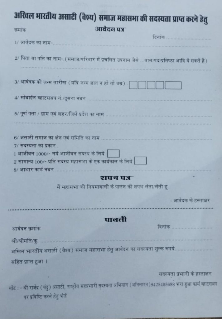 अपने सामाजिक संगठन अखिल भारतीय असाटी समाज महासभा की सदस्यता लेना, संगठन की शक्ति का परिचायक तो है ही, आपका संगठन के प्रति स्नेह,आसक्ति और सम्मान भी है,