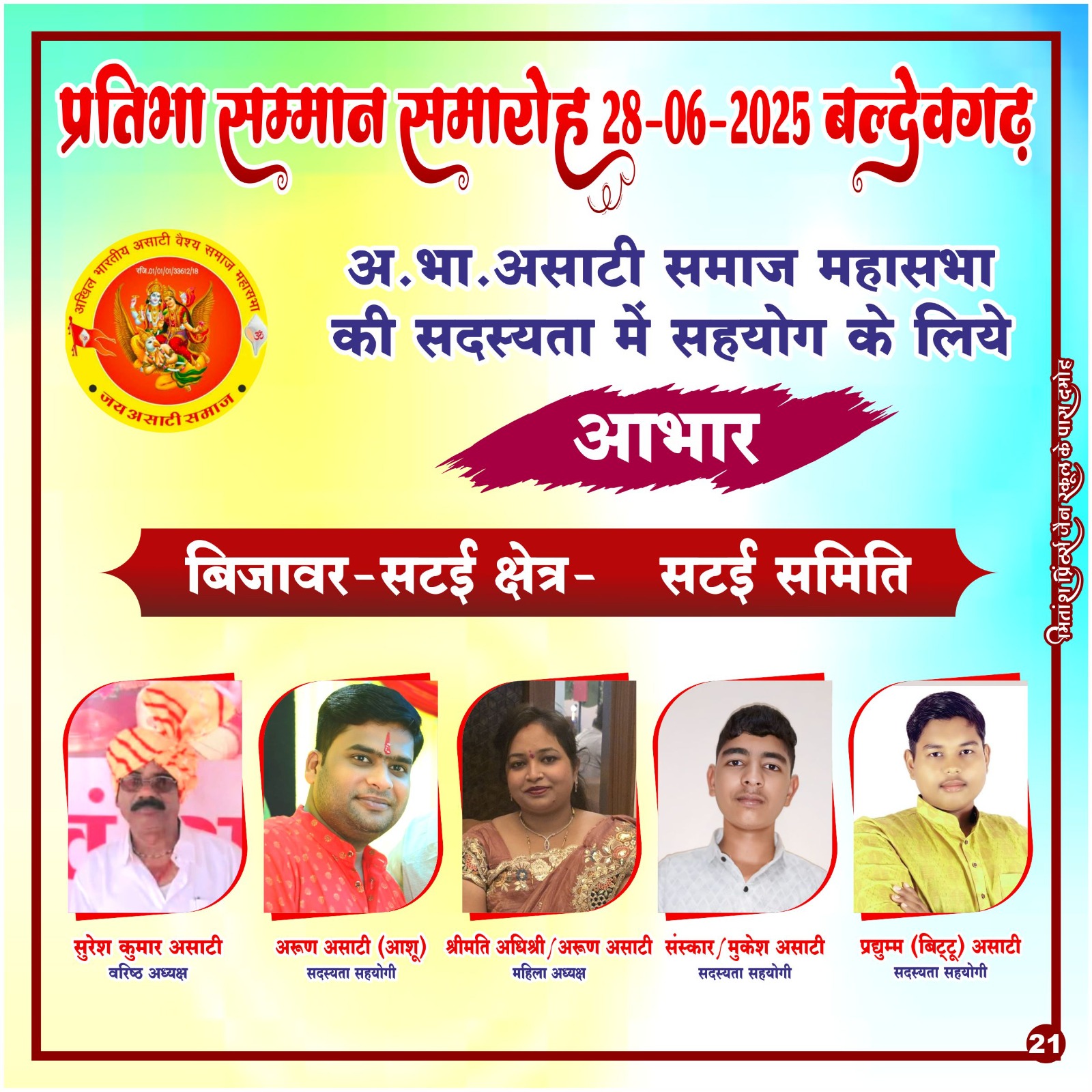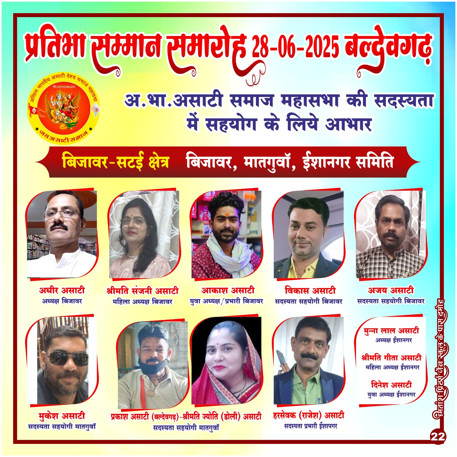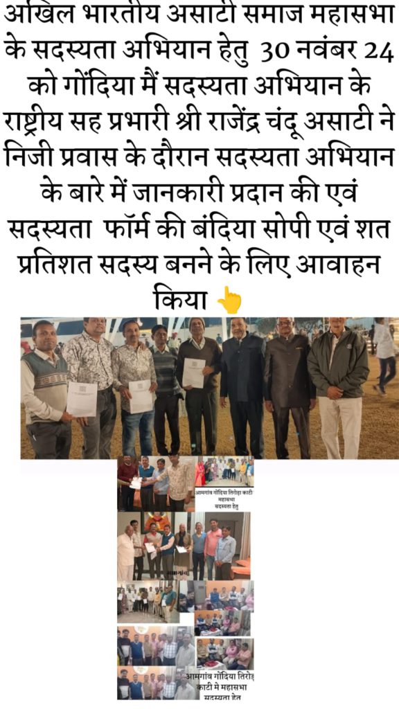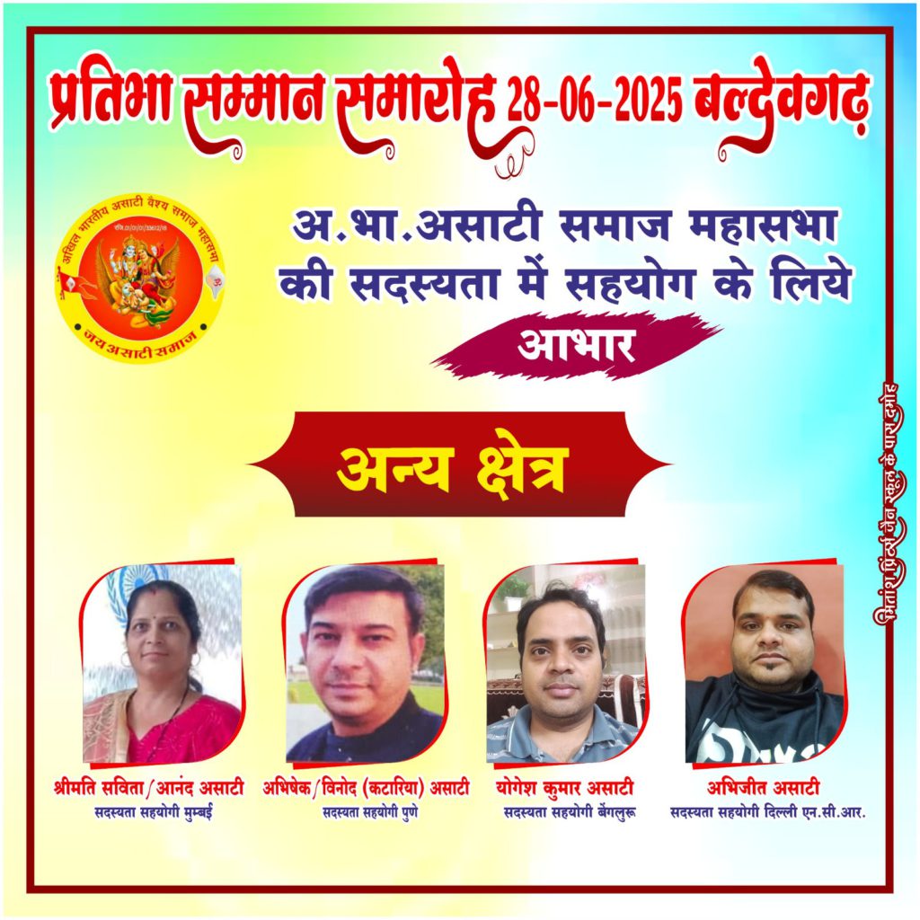 निवेदक ……असाटी …. एवं क्षेत्र प्रभारी अखिल भारतीय असाटी समाज महासभा क्षेत्र