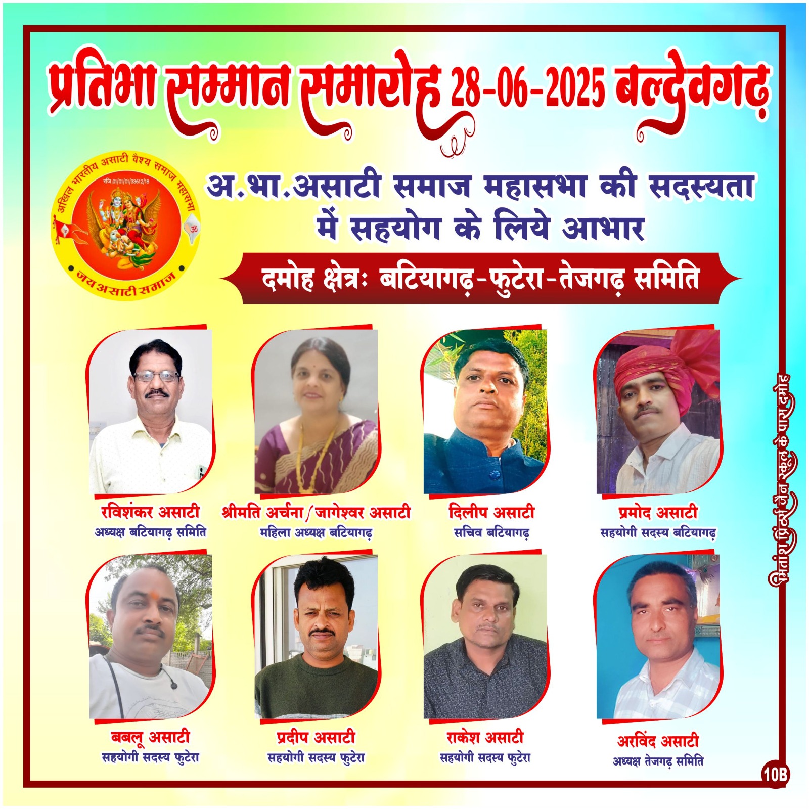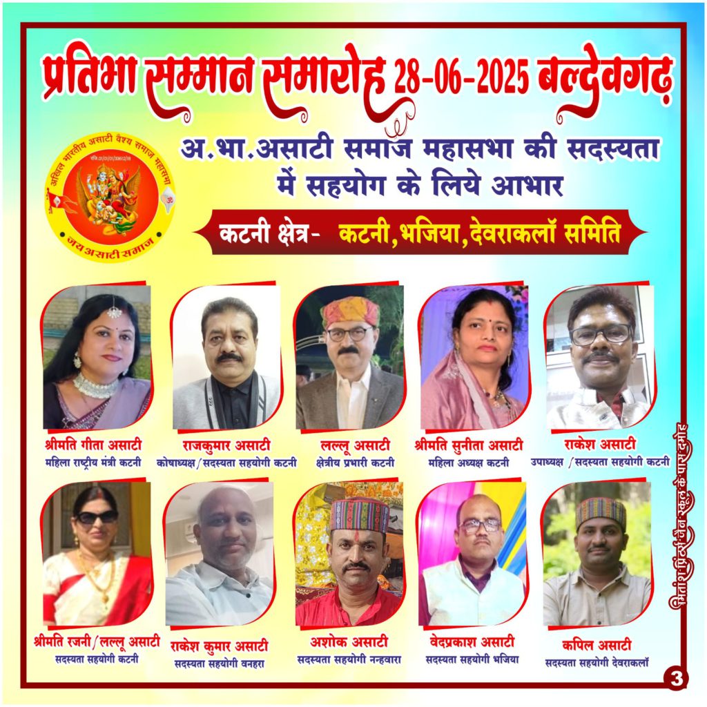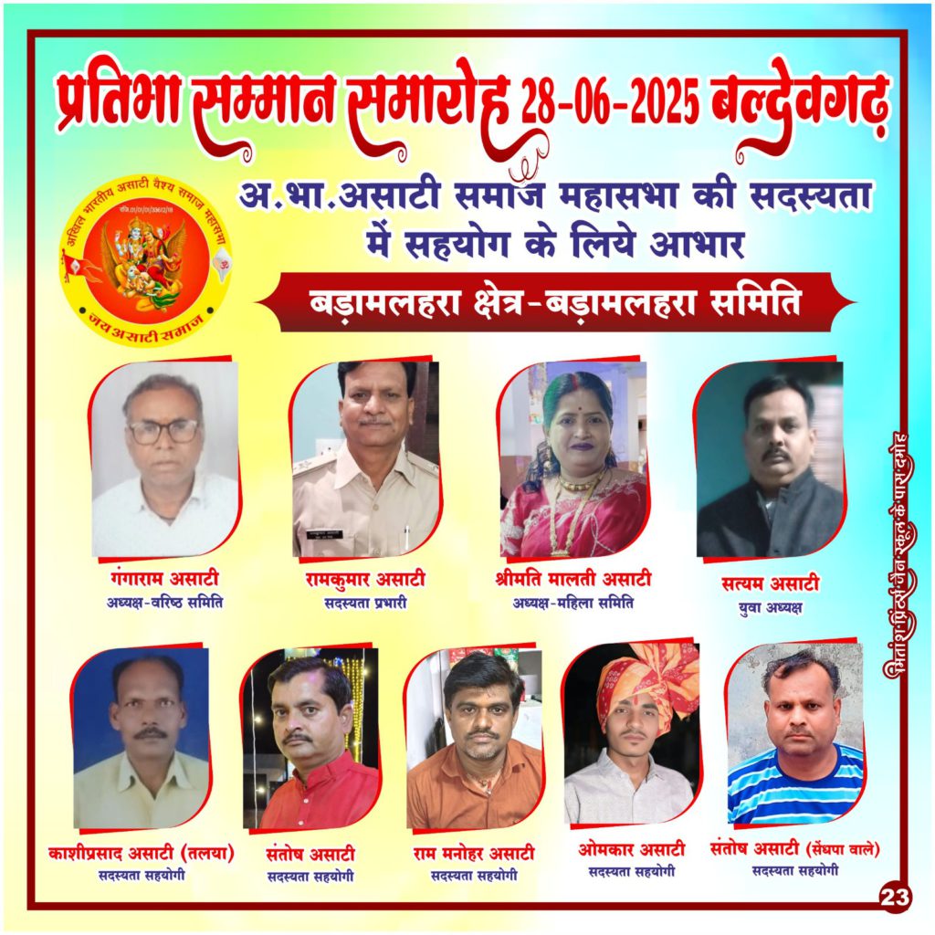 प्रिय असाटी महासभा सदस्यता अभियान के सभी क्षेत्रीय प्रभारी, सहप्रभारी एवं