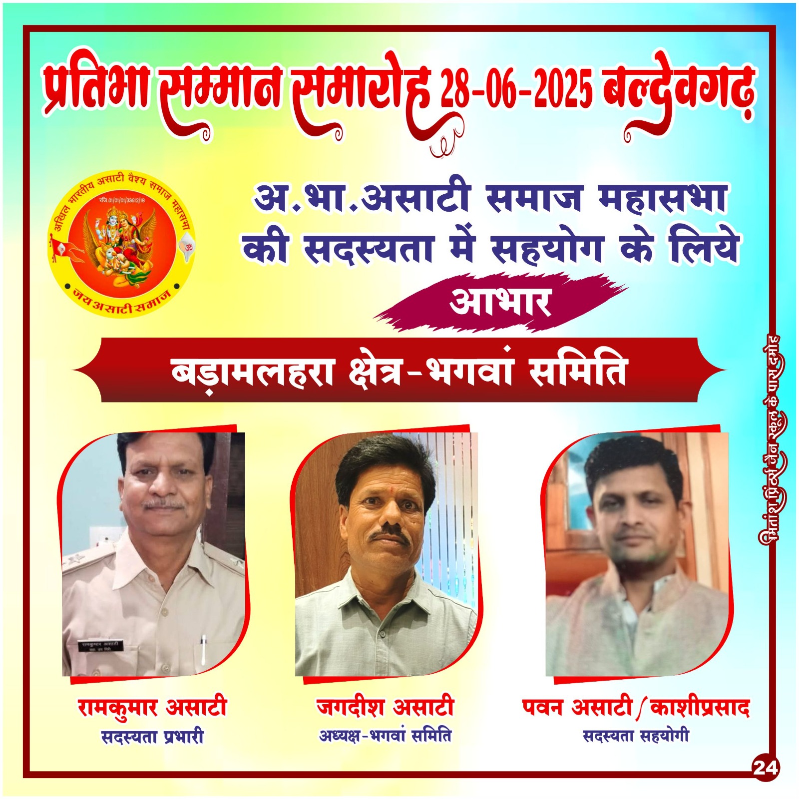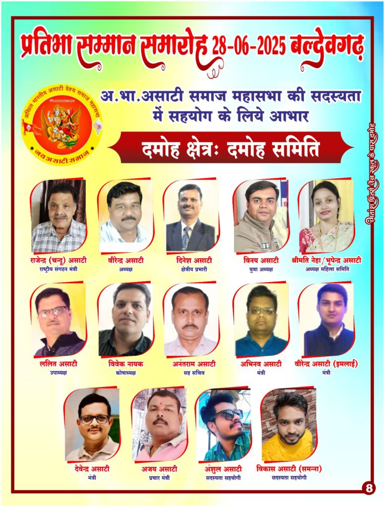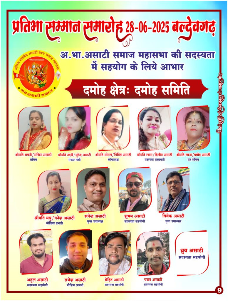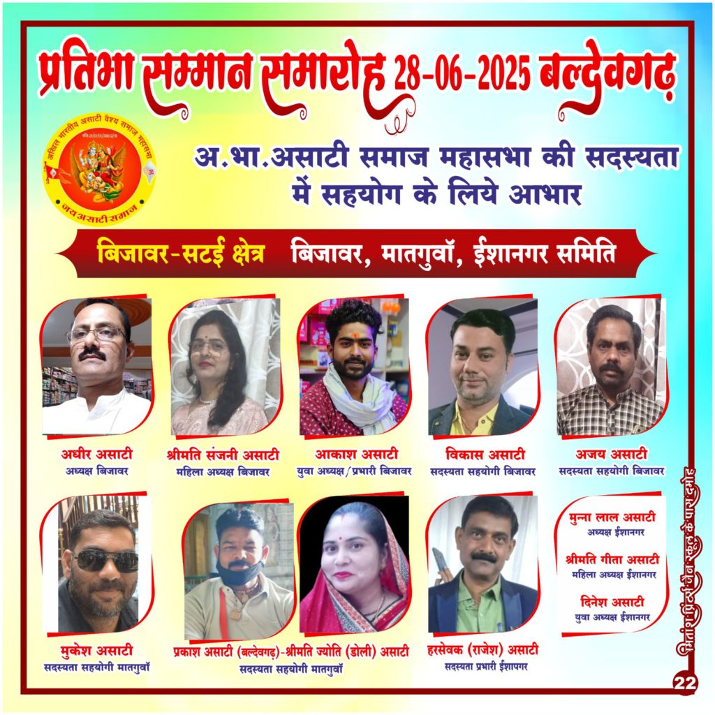 प्रिय असाटी महासभा सदस्यता अभियान के सभी क्षेत्रीय प्रभारी, सहप्रभारी एवं