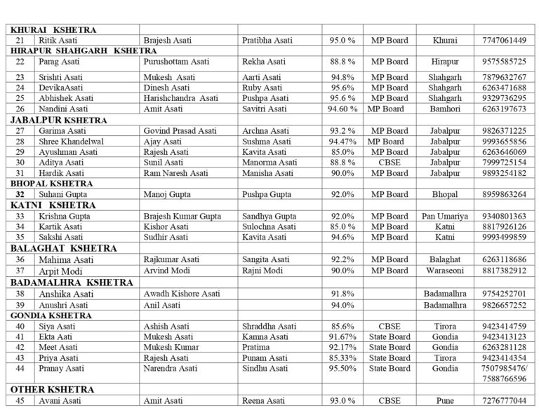 वर्ष 2023.24 के दिनांक 30.06.24 को महासभा एवं वैश्य विकास समिति जबलपुर द्वारा सम्मानित होने जा रहे दसवी के छात्रों की सूची नीचे वर्णित सभी छात्र/छात्राएं समाज की वेबसाइट एवं यूटयूब चेनल पर प्रकाशन हेतु अपनी फोटो व्हाटसअप क्रं0 9425405688 पर भेजें