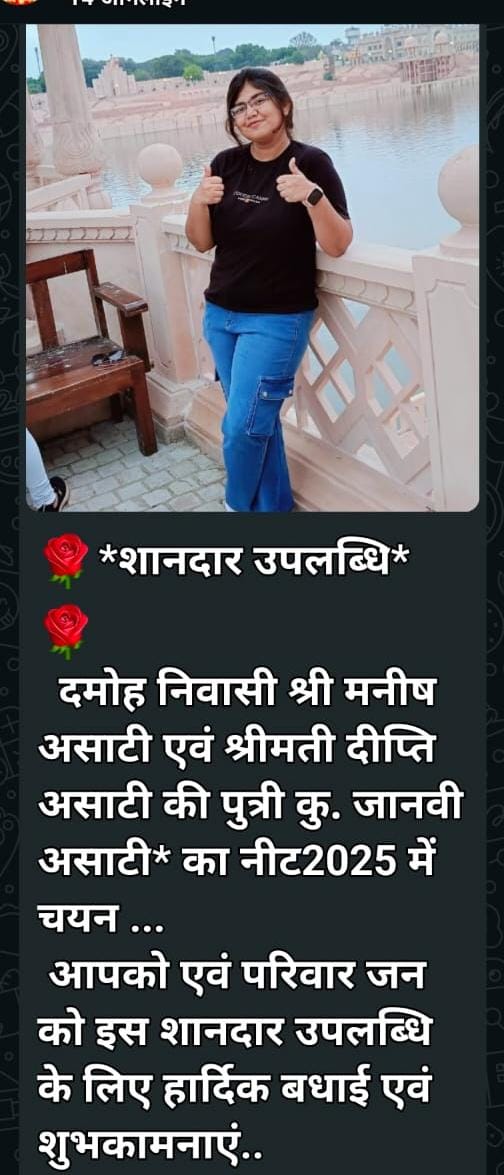अनुक्रमिका- फोटो गेलरी/वीडियो 👇 1/ 27.06.24 को प्रतिभावान जानकारी का पेज अपडेट किया गया इसमें नवीन अपलोडेड नं0 नवीन फोटो अपलोड की गई 👇 2/जिनकी जानकारी प्रकाशित न हो तो वह श्री राजेंद्र (चंदू ) असाटी संचालक असाटी वैश्य परिचय वेबसाइट और यूट्यूब चौनल के मोबाइल नंबर 94254 05688 पर अपनी जानकारी के फोटो एवं वीडियो व्हाट्सएप पर भेजने का अनुरोध है 🙏 🙏 3/ ठवंतक) असाटी समाज विकास समिति एवं महासभा द्वारा आयोजित प्रतिभा सम्मान समारोह 2024 का आमंत्रण पत्र एवं विशिष्ट उपलब्धि/12 वी/10 वीं के सम्मानित होने वाले अभ्यर्भियों की सूची 👇अभिभावक सहित उपस्थित होने का विशेष अनुरोध🙏 🙏 4/ पूर्व में प्रकाशित जानकारी के बाद - जेई एडवांस आईआईटी के लिये, नीट, मेडीकल के लिये,, नेशल टेलेंट सर्च एग्जामिनेशन एनटीएसई, यूपीएससी,. सीए चार्टेड एकाउंटेंटए सीए, कंपनी सेक्रेटरी सीएसए में क्वालिफाइड रेंक हासिल की या प्रतिस्पर्धा से जाब/खेलूकूद/सांस्क़ितक /अन्य विशेष उपलबिध हासिल की है 👇 5/ ीस्कूली शिक्षा स्तर पर प्रोत्साहन हेतु प्राप्त जानकारी की फोटो गेलरी 👇